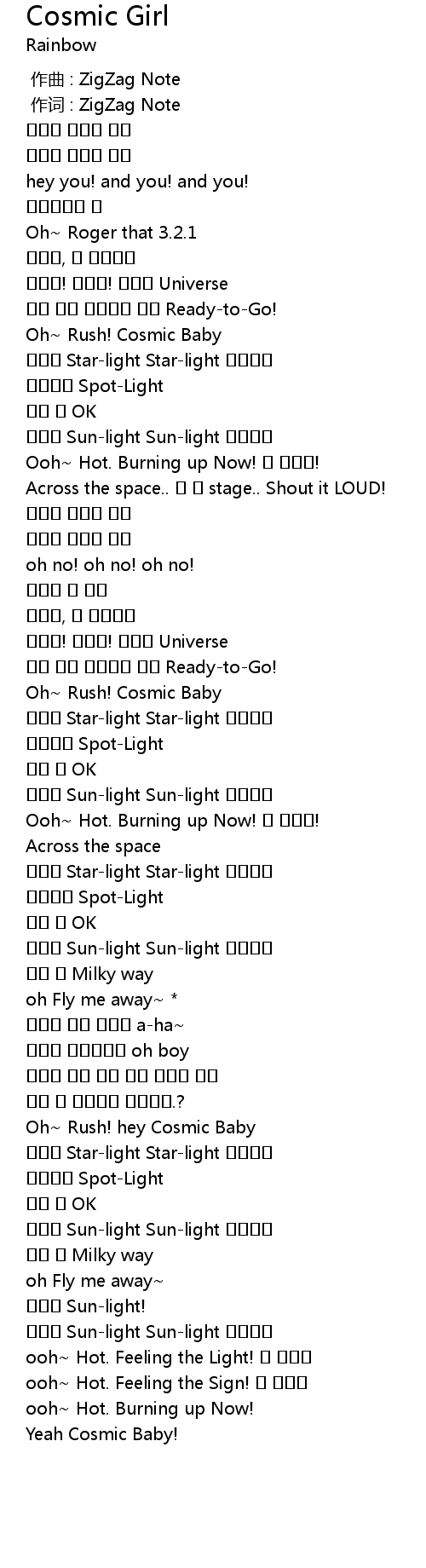 | [01:33.910] | Oh~ Rush! Cosmic Baby |
