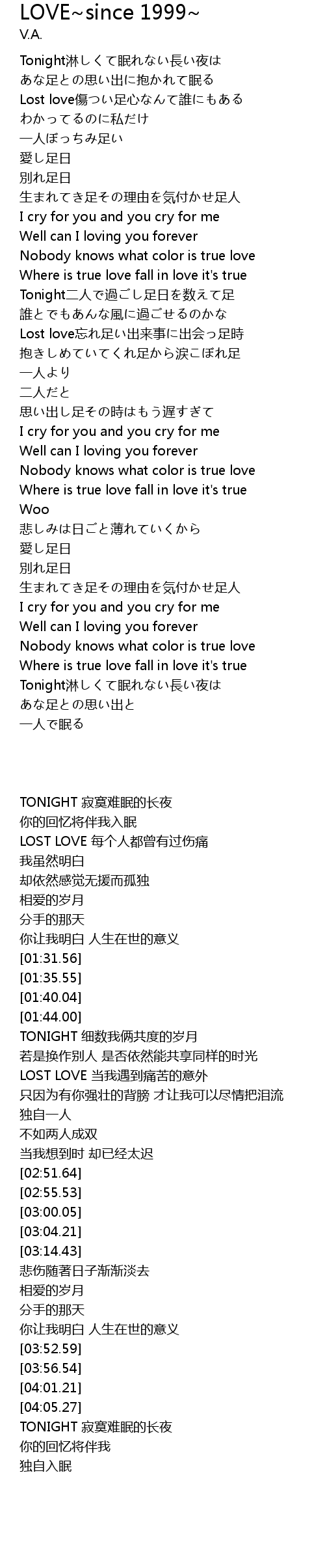 | [00:37.53] | Tonight淋しくて眠れない長い夜は |