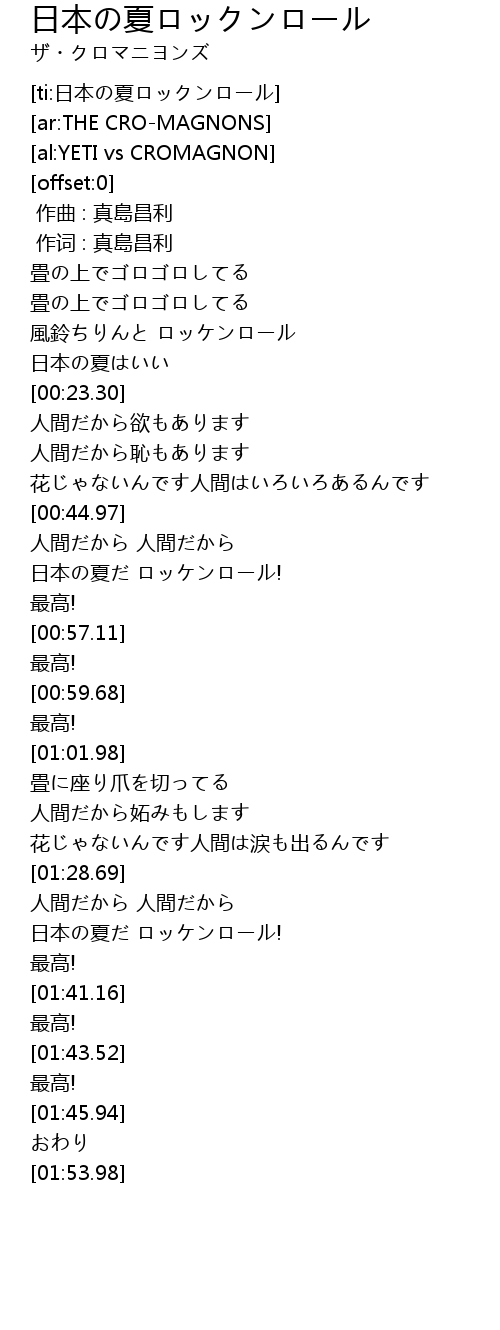 | [00:51.25] | 日本の夏だ ロッケンロール! |