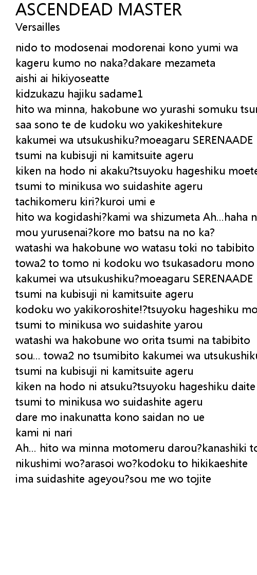 hito wa kogidashi?kami wa shizumeta Ah...haha naru bara yo oshietekure |