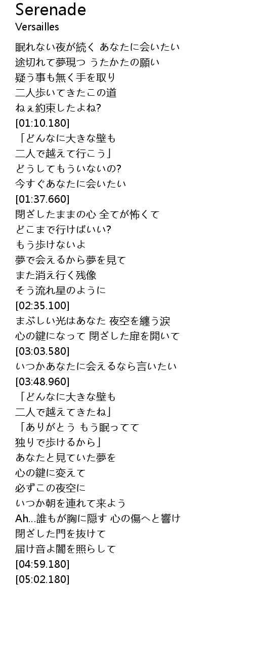 | [02:38.730] | まぶしい光はあなた 夜空を纏う涙 |