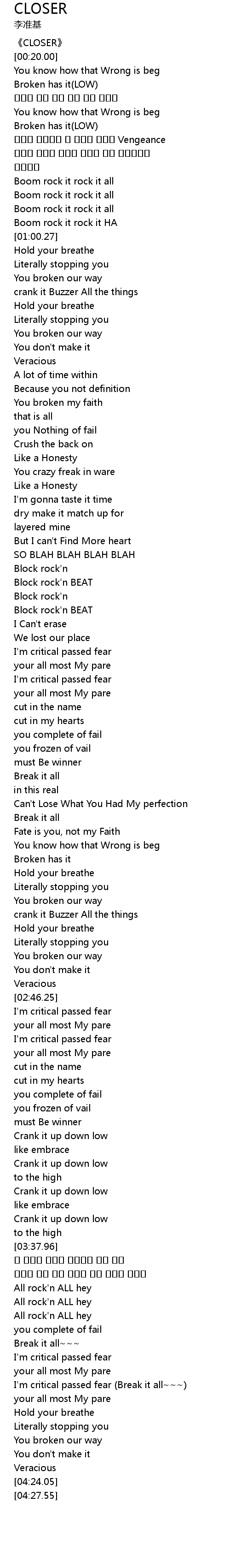| [04:11.69] | I'm critical passed fear (Break it all~~~) |