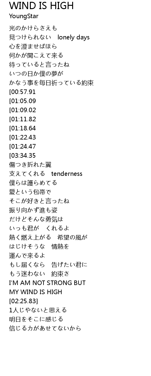 | [03:30.15][01:24.47] | MY WIND IS HIGH |