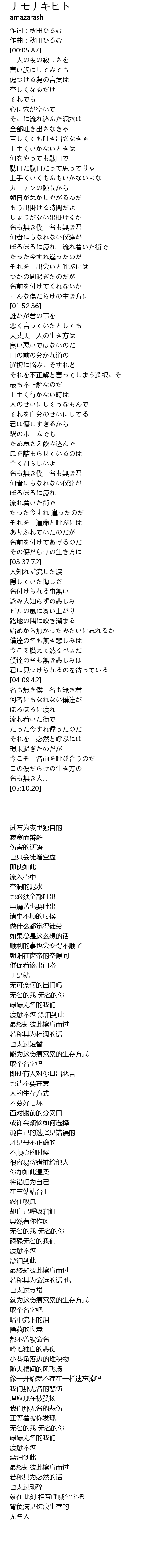 | [04:10.84] | 名も無き僕 名も無き君 |