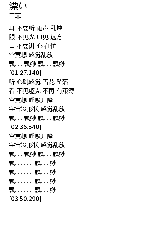 | [02:55.410] | 飘......飘缈 飘......飘缈 |