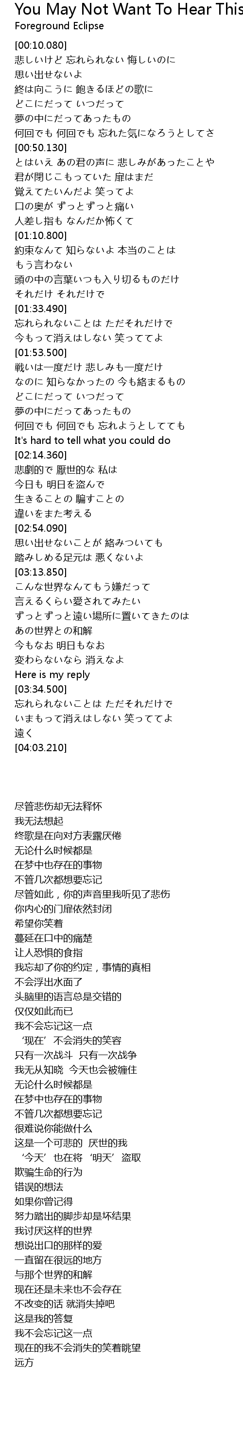 | [00:33.730] | 終は向こうに 飽きるほどの歌に |
