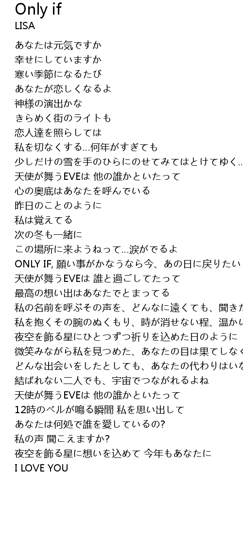 | ONLY IF, 願い事がかなうなら今、あの日に戻りたい | |