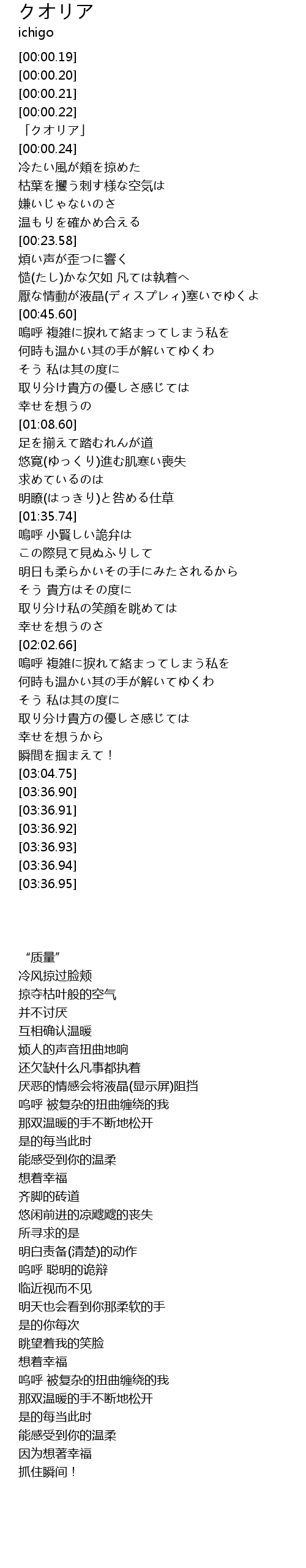 | [00:00.23] | 「クオリア」 |