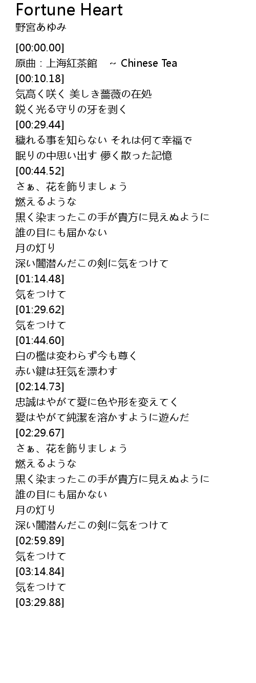 | [00:14.90] | 気高く咲く 美しき薔薇の在処 |