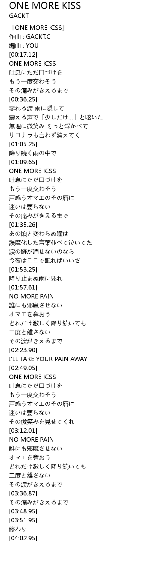 | [02:49.68] | ONE MORE KISS |