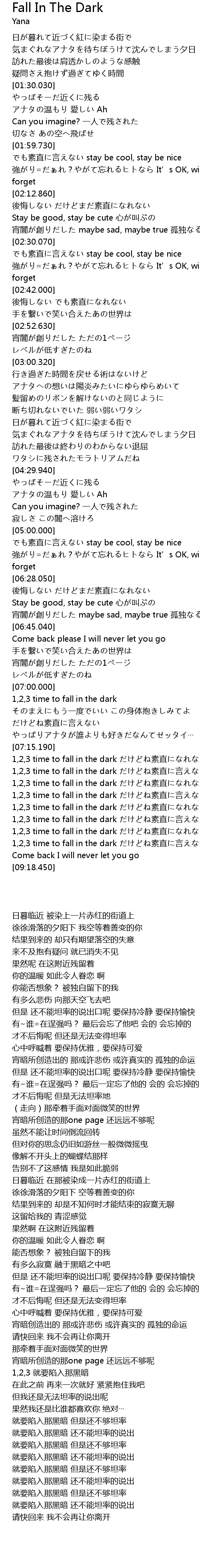 | [08:30.010] | 1,2,3 time to fall in the dark だけどね素直に言えない |