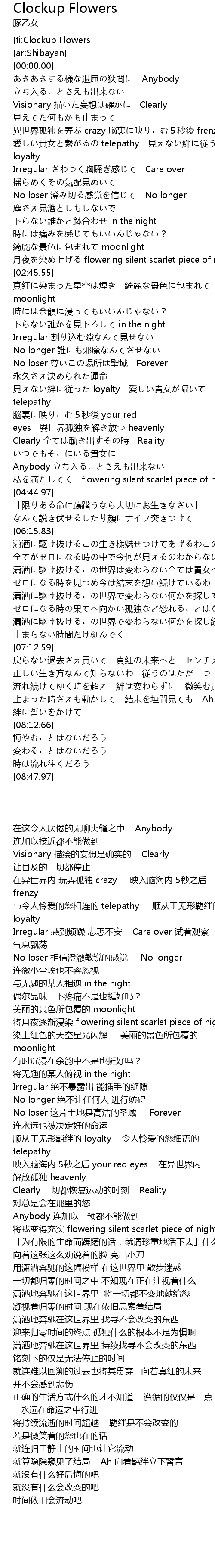 | [04:40.45] | 私を満たしてく flowering silent scarlet piece of night |