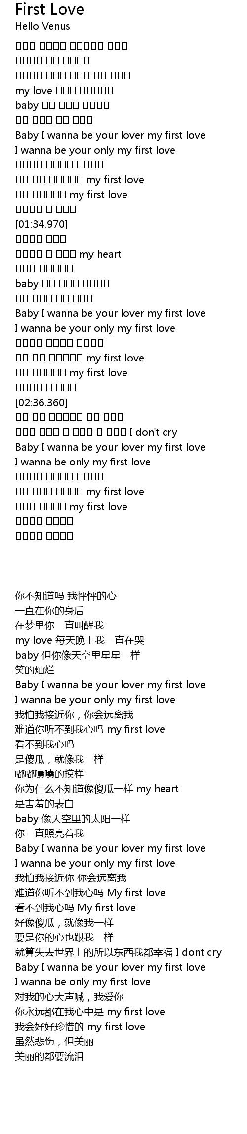 | [02:09.830] | I wanna be your only my first love |