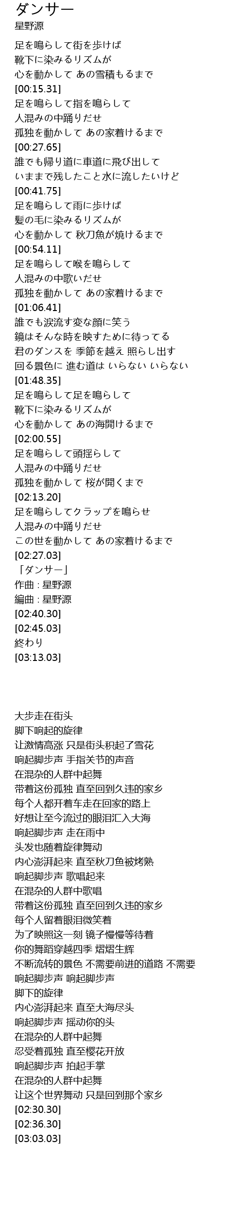 | [02:30.30] | 「ダンサー」 |