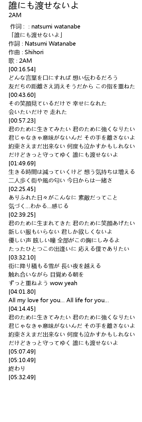 | [04:54.77] | だけどきっと守ってゆく 誰にも渡せないよ |