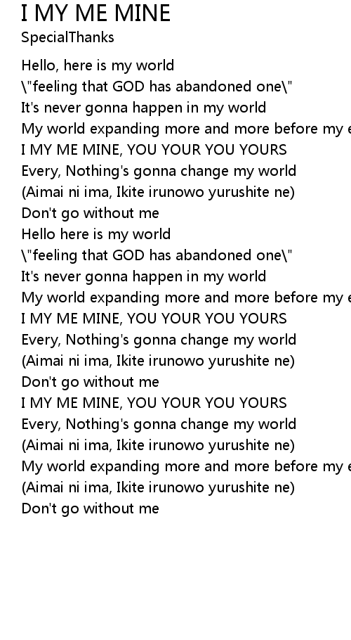 I MY ME MINE, YOU YOUR YOU YOURS |