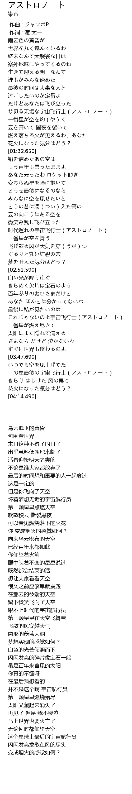| [03:56.500] | この星最後の宇宙飞行士(アストロノート) |