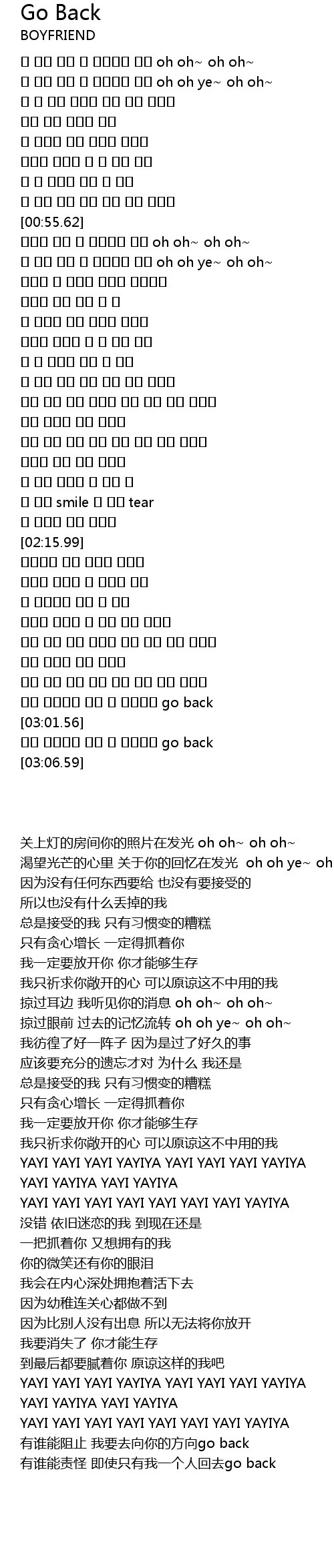 눈 앞을 스쳐 옛 기억들이 흘러 oh oh ye~ oh oh~ |
