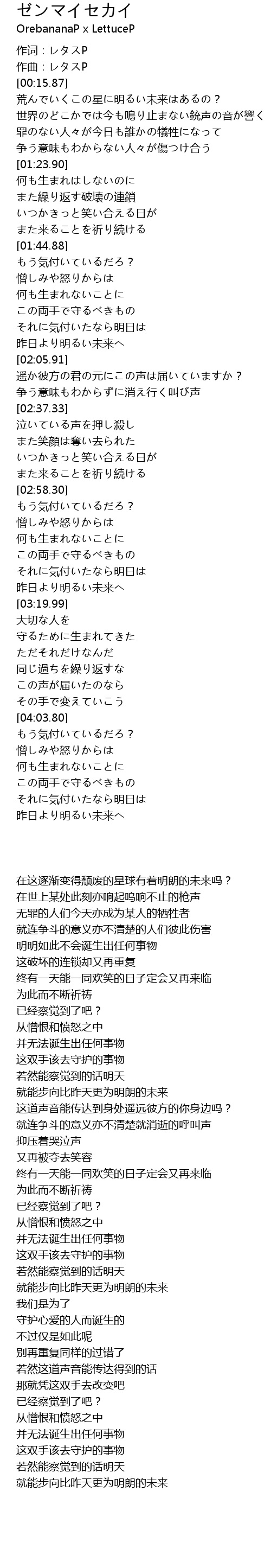 | [00:41.56] | 世界のどこかでは今も鳴り止まない銃声の音が響く |