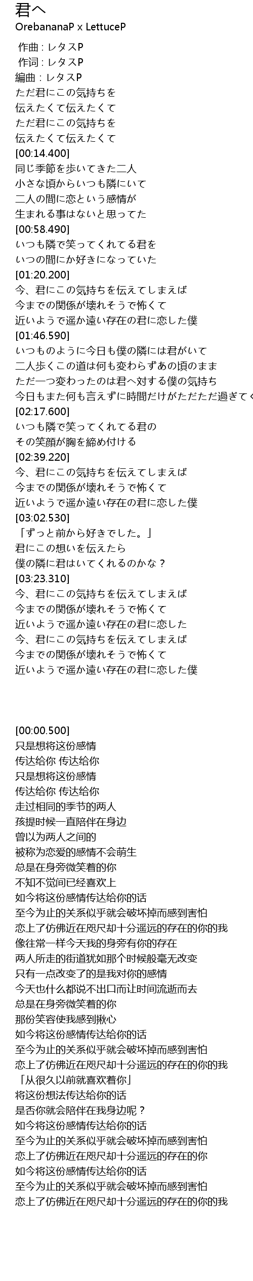 | [03:36.840] | 近いようで遥か遠い存在の君に恋した |