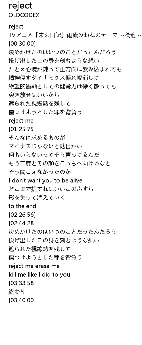 | [03:18.96] | reject me erase me |