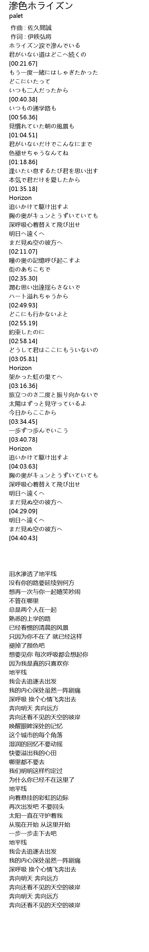 | [00:08.03] | ホライズン涙で滲んでいる |