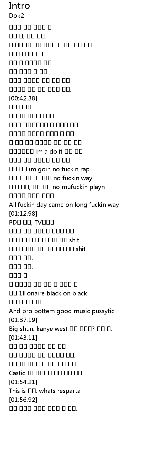 | [01:38.57] | Big shun. kanye west 내가 부러워? 하면 되. |