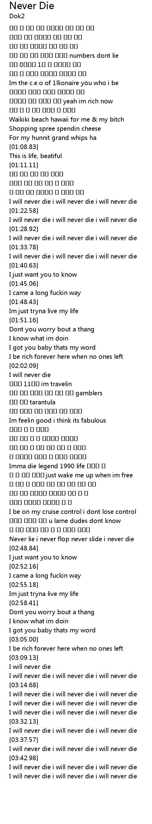 | [03:38.10] | I will never die i will never die i will never die |