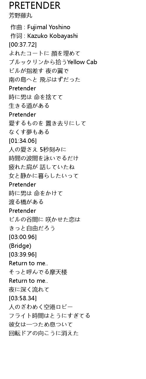 | [02:42.97] | Pretender |