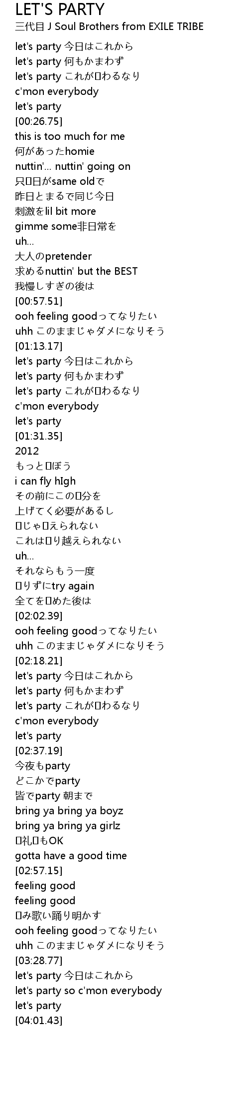 | [03:32.89] | let's party so c'mon everybody |