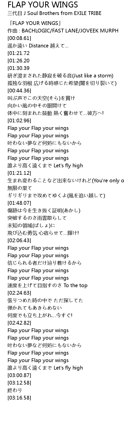| [00:00.61] | FLAP YOUR WINGS |