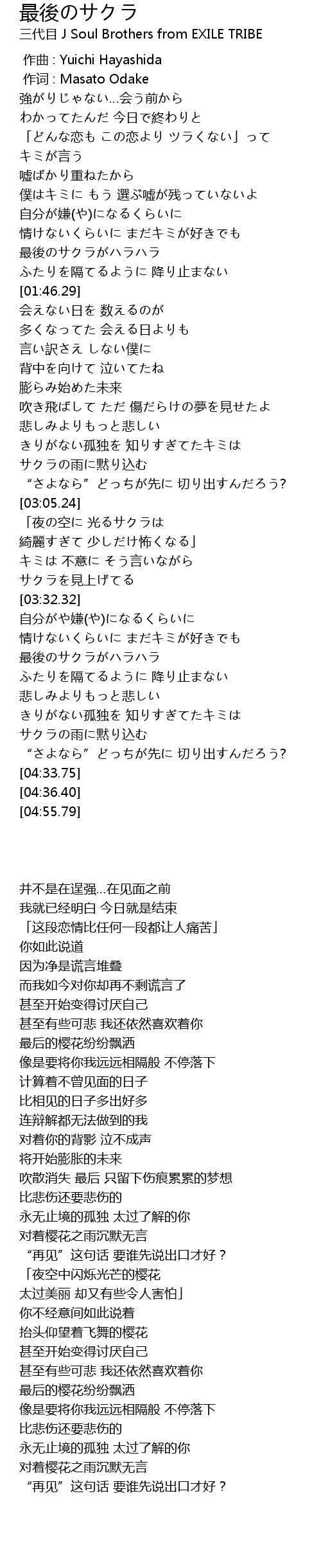 | [03:46.60] | 最後のサクラがハラハラ |