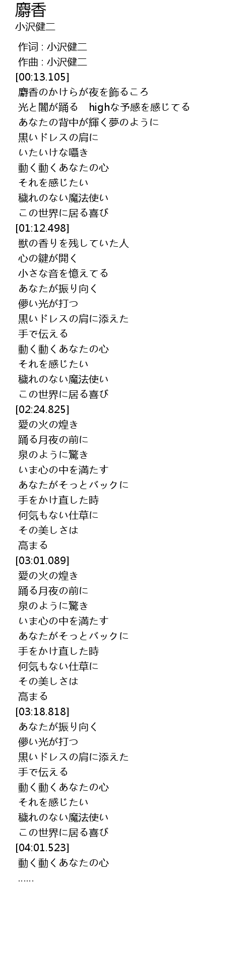 | [00:19.376] | 麝香のかけらが夜を飾るころ |
