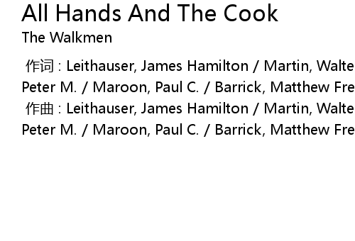 | [00:00.000] | 作词 : Leithauser, James Hamilton / Martin, Walter R. / Bauer, Peter M. / Maroon, Paul C. / Barrick, Matthew Frederick |