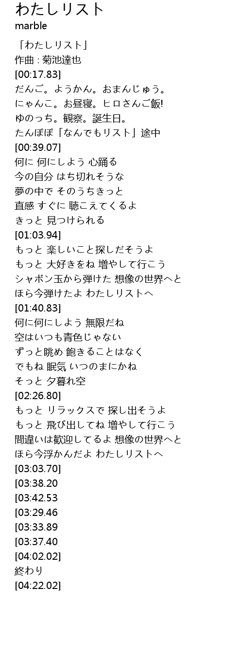 | [00:00.83] | 「わたしリスト」 |