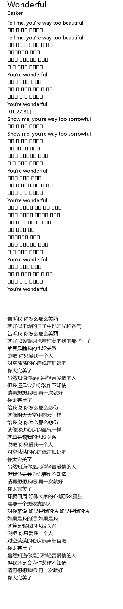 | [00:46.38] | Tell me, you' re way too beautiful |