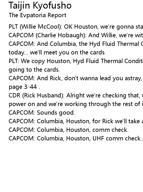 CAPCOM: And Columbia, the Hyd Fluid Thermal Conditioning will not be required today... we'll meet you on the cards |
