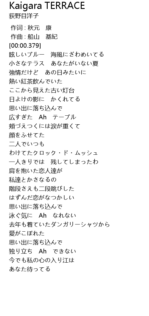| [00:30.185] | 小さなテラス あなたがいない夏 |