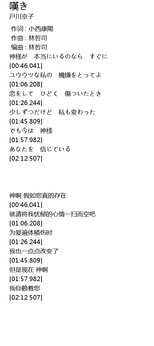 | [00:29.271] | 神様が 本当にいるのなら すぐに |