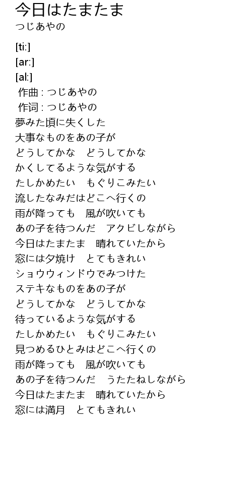 作词 : つじあやの |