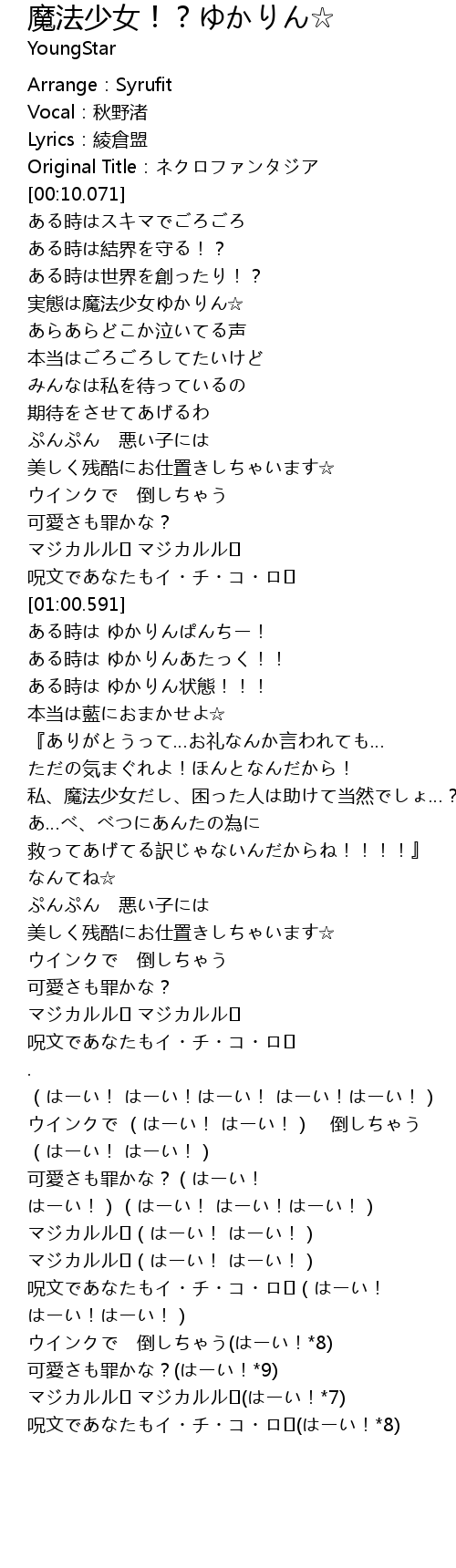 | [00:18.195] | 実態は魔法少女ゆかりん☆ |