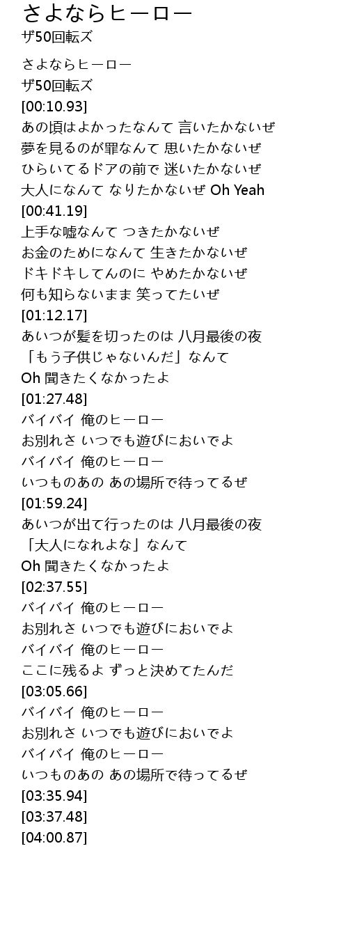 | [02:53.60] | バイバイ 俺のヒーロー |