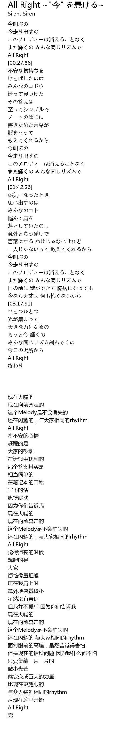 All Right " jin" xuan Lyrics