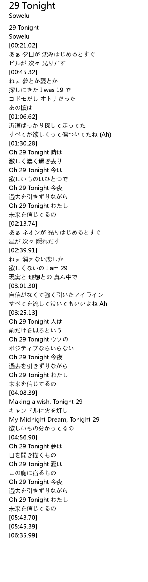 | [04:57.72] | Oh 29 Tonight 夢は |