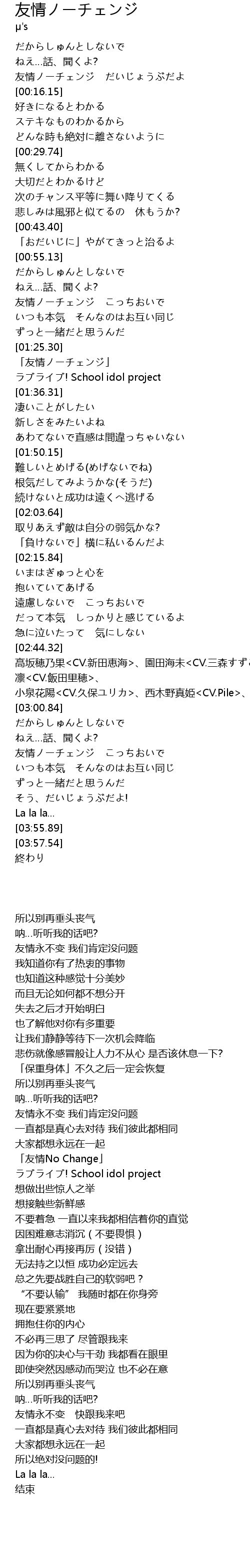 | [01:26.62] | 「友情ノーチェンジ」 |