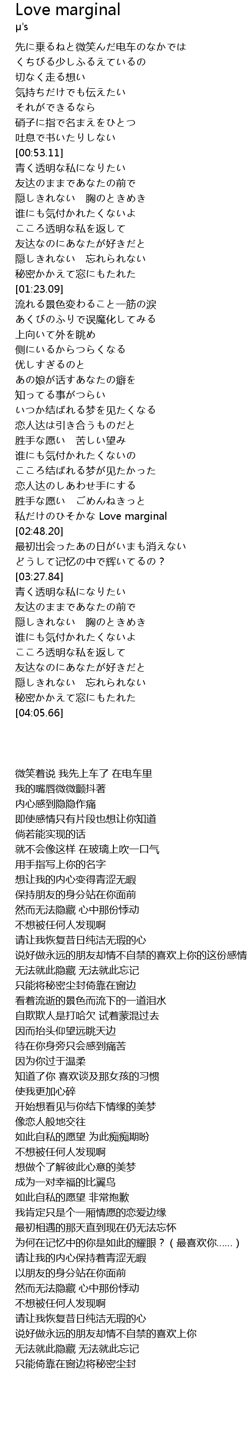 | [02:42.04] | 私だけのひそかな Love marginal |