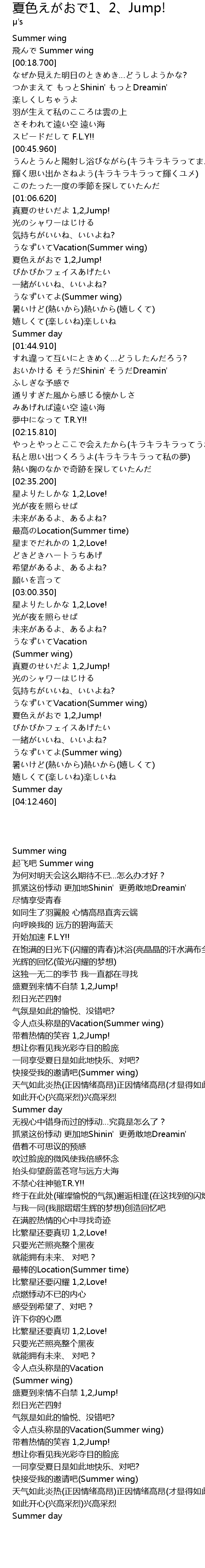 | [03:34.680] | 真夏のせいだよ 1,2,Jump! |