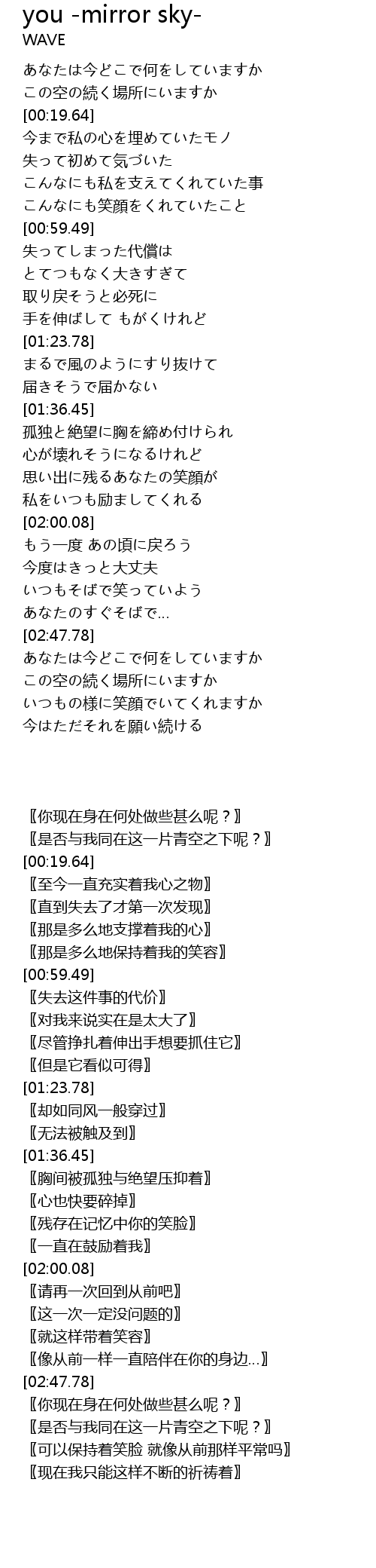 | [03:00.35] | いつもの様に笑顔でいてくれますか |