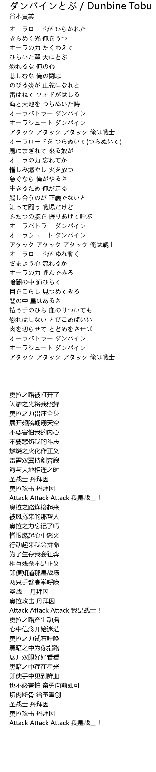 | [01:14.40] | アタック アタック アタック 俺は戦士 |