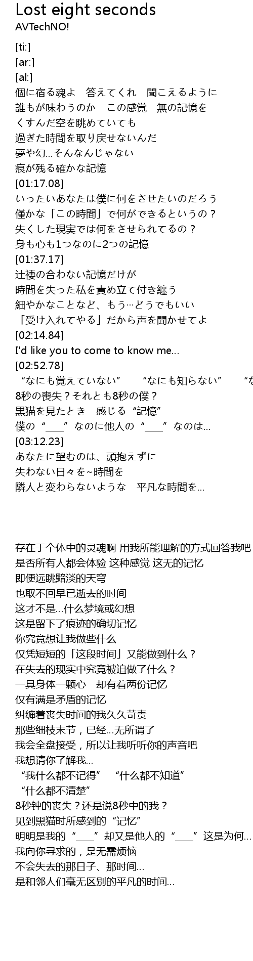 | [02:58.51] | 8秒の喪失?それとも8秒の僕? |
